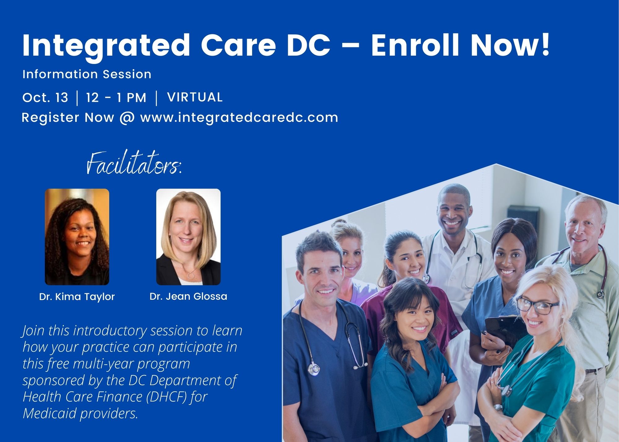 Description: Integrated whole-person care has been shown to improve outcomes and increase Medicaid beneficiary satisfaction. We want to support you to enhance your practice’s capability to deliver person-centered care, use population health analytics, and engage leadership to support value-based care. Join us to learn more about provider engagement opportunities for year 2 of the Integrated Care DC Program. The session will be repeated at a later date.
