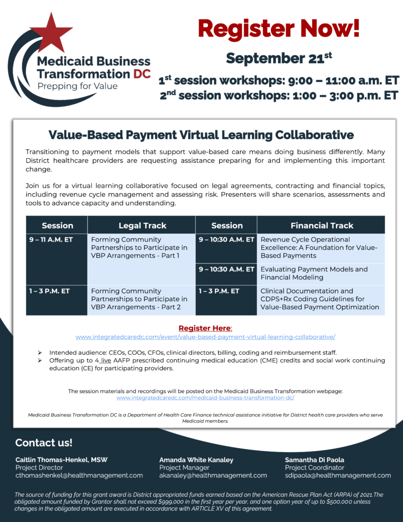 Transitioning to payment models that support value-based care means doing business differently. Many District healthcare providers are requesting assistance preparing for and implementing this important change.