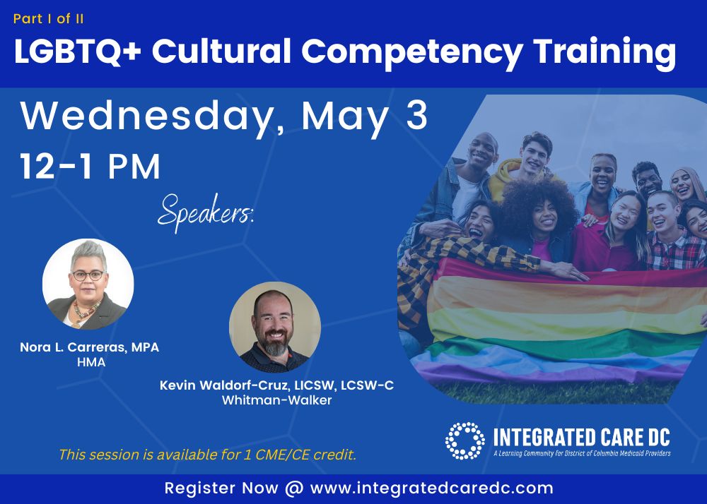 Check out one or more of our upcoming Integrated Care DC webinars. You can earn one CME/CE credit for each one-hour live session. As a reminder: prior attendance is not required for any webinar series. If you missed a live webinar, you can still catch up by watching recordings on-demand in the Learning Library.