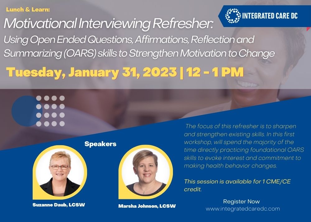 Motivational Interviewing Refresher: Using Open Ended Questions, Affirmations, Reflection and Summarizing (OARS) skills to Strengthen Motivation to Change Speakers: Suzanne Daub, LCSW & Marsha Johnson, LCSW