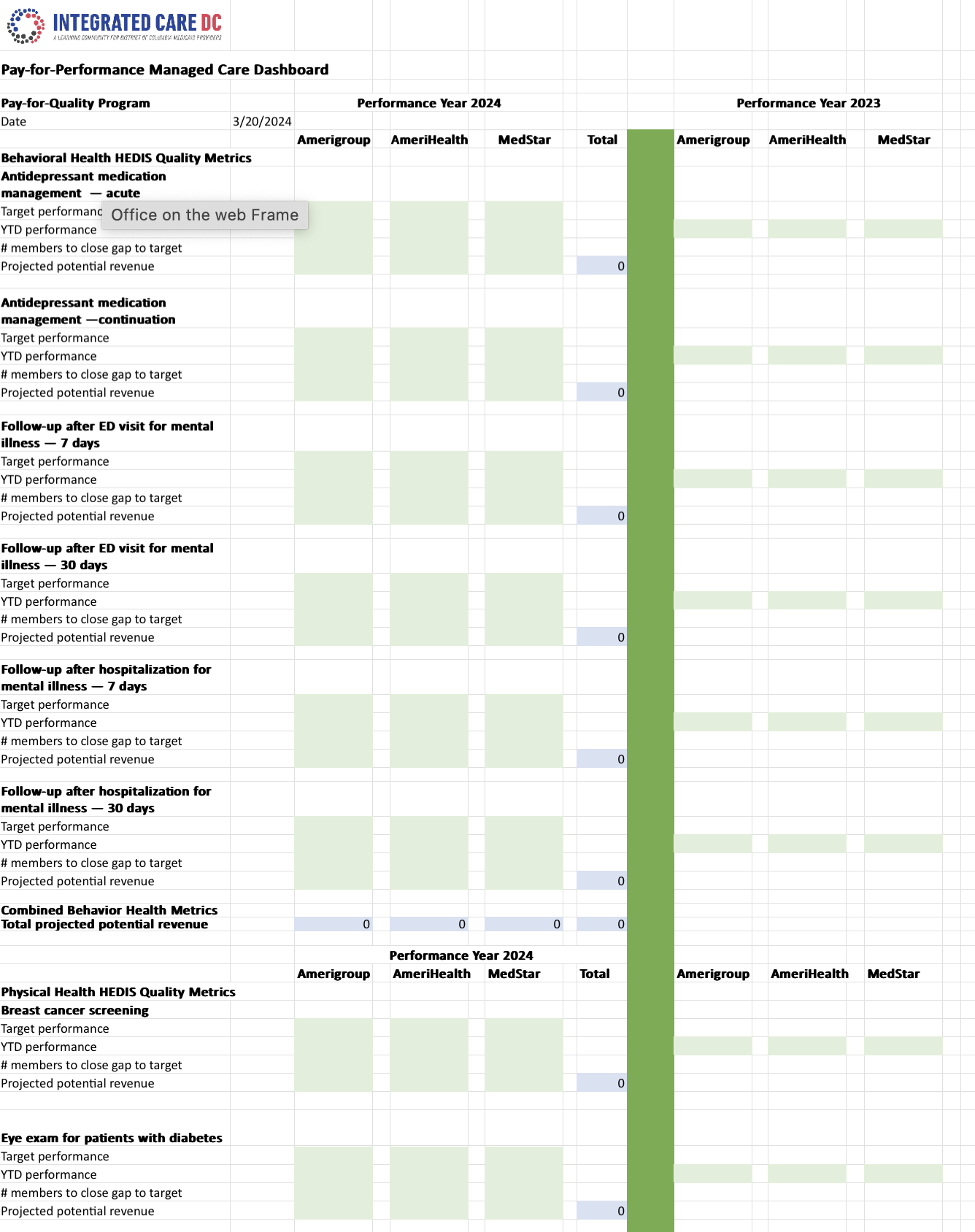 Pay for Performance (P4P), Key Performance Indicators (KPI) Dashboard